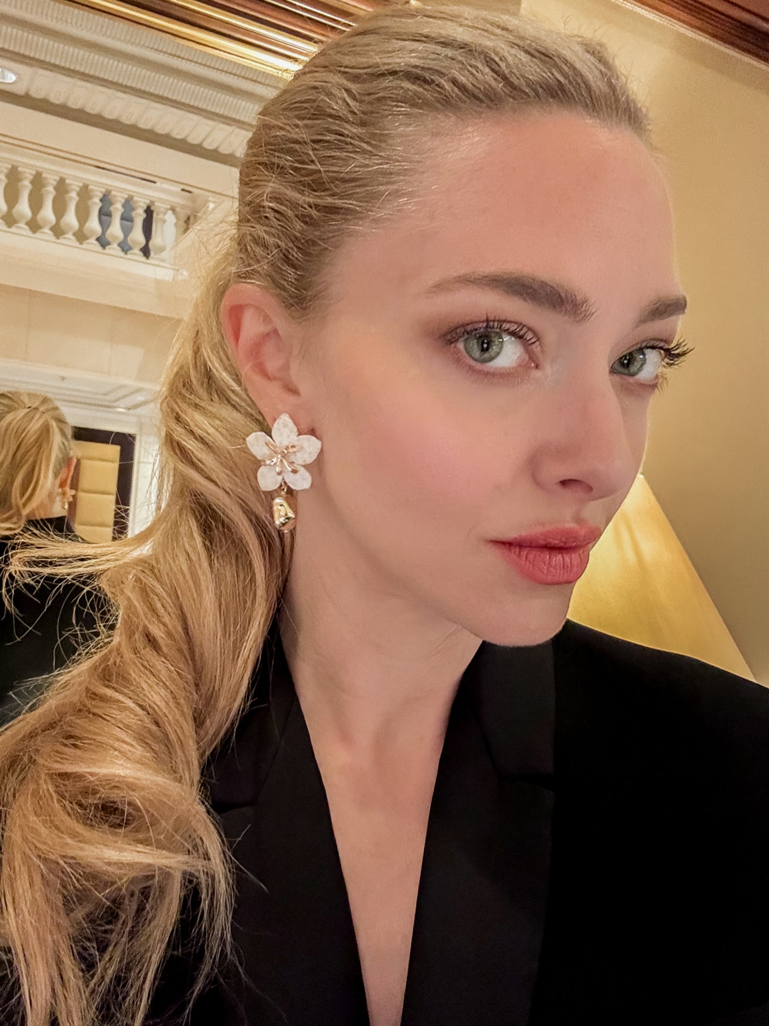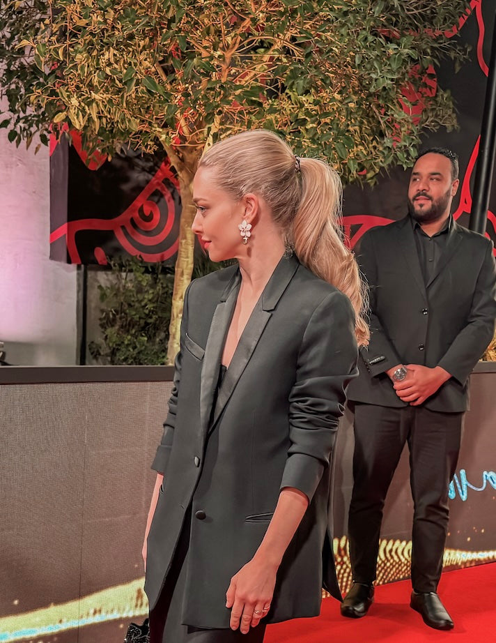 Beautiful actress, Amanda Seyfried, wears her custom Forlanya drop petal earrings to the Life is a Dream Concert.